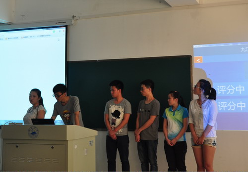 信息学院院长邓安远首先真诚地预祝2012级软件工程实验班的期末项目汇报取得圆满成功,肯定了教育教学改革中取得突破性的成效。接着,各小组派出他们自己的解说员以PPT形式给大家介绍本组作品的专业特色和设计的寓意,实验从项目简介、项目亮点、设计思路、需求分析、技术亮点和技术难点等方面向大家展示了自主开发的作品,各小组得到了全场老师和同学们的掌声。