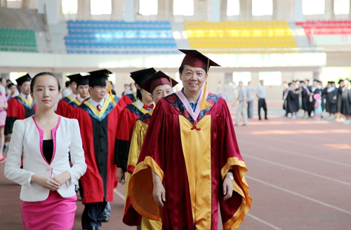 各二级学院领导和机关各部门负责人也分别走入毕业生队伍中,为全体毕业生扶正学位帽,拨转流苏。毕业生满怀激动,逐一快步趋前,向导师深深地鞠躬。整个会场气氛热烈、喜气洋洋,难忘的时刻凝聚在每个同学的笑脸上。
