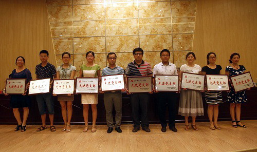 会上,副校长吴桃娥宣读了《中共九江学院委员会关于表彰2014—2015学年先进基层党组织、优秀共产党员和优秀党务工作者的决定》,外国语学院党委等8个先进基层党委、经济与管理学院教工第六党支部等30个先进党支部、杨盛标等110名优秀共产党员、夏玉香等28名优秀党务工作者受到表彰。