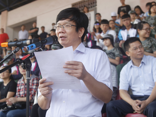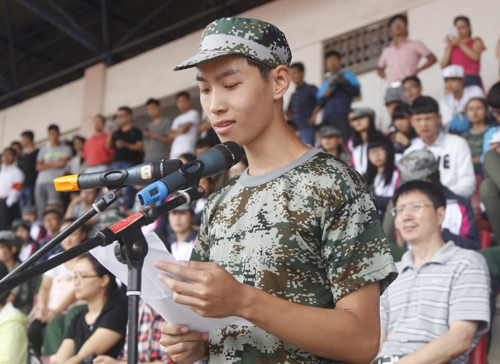 军训总结表彰大会结束后,随即举行了2015级新生开学典礼,陶春元副校长主持了开学典礼。