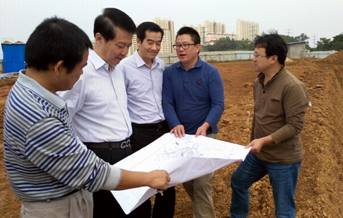 10月10日下午,校党委书记郑翔在党办主任刘遵海的陪同下,来到艺术学院新建工程施工现场,检查施工情况,了解工程进度,指导工程进展。