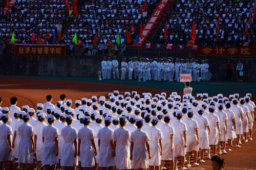 在热烈的掌声中,校党委书记郑翔宣布:九江学院第十四届运动会开幕!