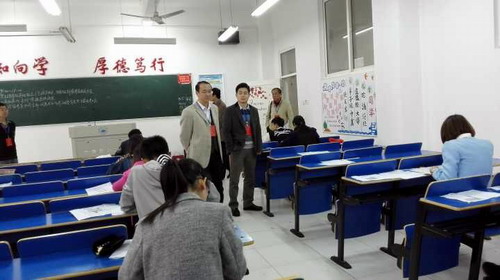 考试期间,在本校考场周冰冰代表省学位办重点检查了我校试卷保密室和考前准备工作,监督检查了我校监考人员工作情况,并到考试现场进行了巡视和督查,对我校考前工作的充分准备,考试过程的管理规范给予了充分的肯定。