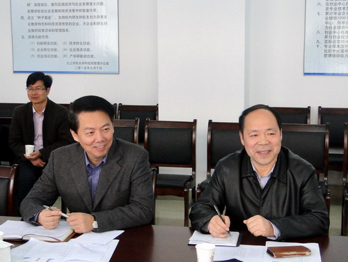 座谈会上,郑书记听取每个教师企业发展概况并针对提出的困难进行了综合分析诊断。为更好地帮助教师企业成长壮大,充分发挥大学科技园的孵化作用,郑书记指出一是要给办企业的教师腾出时间,就是要求教师企业所在二级学院在教学剩余改革方案里面设立教学实践岗或者实践教学岗,减少课时量,并且与科研处一起相对集中地合理安排上课时间;二是成立四个支持团队,即沙龙讲座支持团队,由科研处统筹协调,经管学院、政法学院、会计学院、艺术学院提供优秀教师举办沙龙讲座,讲解企业经营管理、市场营销、金融物价、专题知识帮助教师企业提高经营管理水平;企业诊断支持团队,由经管学院牵头,政法学院、科研处、会计学院参加组成团队,帮助企业谈判、签订协议和知识产权保护等;电商促销支持团队,由电商学院、毕业生分配办公室广泛联系校友帮助教师企业通过电子商务销售自制产品;财务管理支持团队,由财务处牵头,会计学院、九江财源会计有限公司参与,帮助企业进行财务管理,盘活企业横向课题经费,既建立好本企业的账本,又进一步规范财务管理。