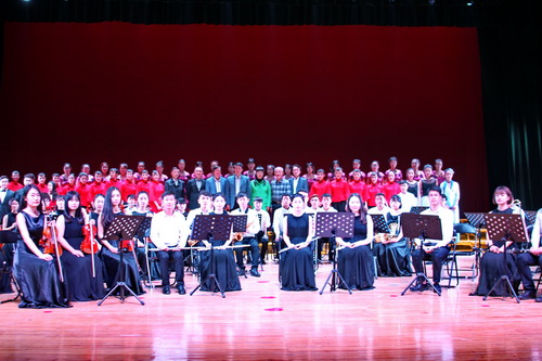 下午,校党委书记郑翔陪同吴雨先生一行在主校区大礼堂观看了艺术学院音乐舞蹈表演,并与全体演员合影。随后,吴雨先生一行在副校长杨焱林的陪同下参观了艺术学院新建工程。