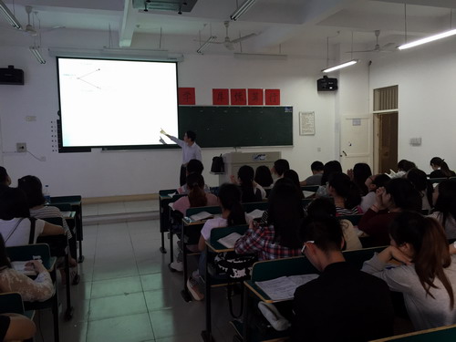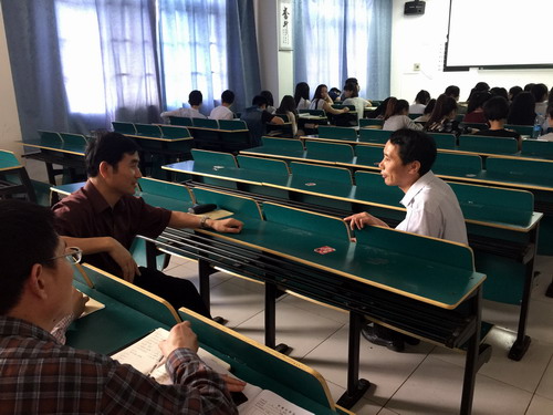 《金融风险管理》是金融类专业的一门重要的专业基础课。陈老师在授课过程中内容熟练、语言连贯、条理清晰。魏副书记在课堂上聚精会神,认真地做着笔记。