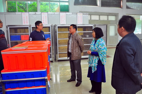 交流结束后,姜东升处长陪同韩学监一行参观了我校的白案配送中心、净菜配送中心、三食堂、米饭生产中心、污水处理厂、校园新区、科技园等场所。