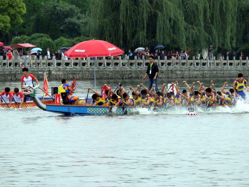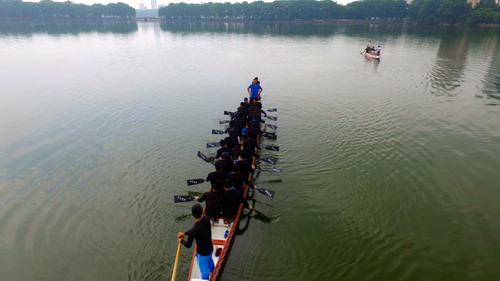 龙舟队是我校的传统特色运动队,学校领导以及学院领导都给予很大的支持与帮助,不断改善训练条件和训练待遇,为龙舟队的训练、比赛提供良好的后勤保障。成绩的取得离不开领导的关心,也离不开全体队员、教练员的艰辛付出。在教练员周海浪、贺静、王向棋的带领下,队员们坚持全年训练,特别是水上训练,他们克服高温、雨水天气,坚持每天下水训练,动感的鼓声、整齐的划桨、激情的呐喊,已经成为南门湖上一道美丽的风景线。