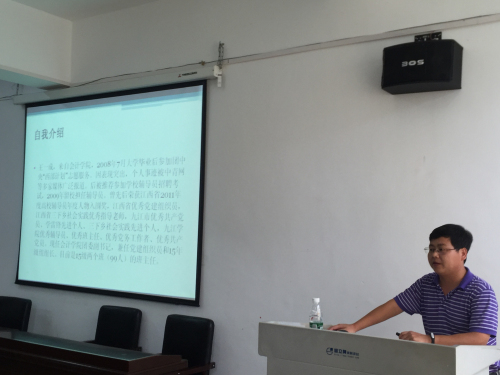 学生处刘平处长在培训会上介绍了我校学生工作“三一三就”工作要求,特别强调跨学院担任班主任工作要协调好两个方面问题,一是辅导员与班主任协作管理要协调好,工作职责要明确;二是要适应担任班主任所在学院学生工作管理模式,在工作时间与要求上要协调好,保证工作任务顺利完成;并希望新任班主任要尽快熟悉学生工作相关政策与规定,掌握学生工作的规律和特点,爱岗敬业,在学生成人成才过程中当好人生导师。