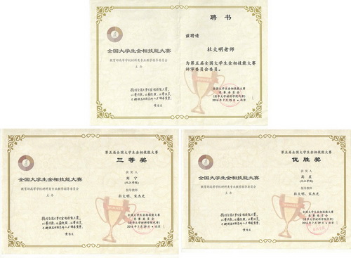 本届大赛分预赛、复赛、半决赛和决赛四个阶段进行。其中,预赛由各参赛高校自行组织,复赛、半决赛和决赛在清华大学举行。据不完全统计,约有14000名本科生参与了各高校组织的预赛,从中选拔出396名优秀选手来到清华参加了复/决赛阶段的比赛。本届大赛无论是参赛高校数还是参赛选手数都创下了全国大学生金相技能大赛的历史新高。我校由机材学院教师杜大明、宋杰光带队参加了比赛,经过激烈的比拼,刘宁同学获全国大学生金相技能大赛三等奖,高星同学获优胜奖。杜大明老师在比赛期间作为评审委员会委员全程参与了评分工作。