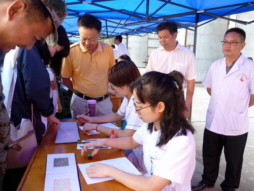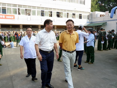 9月13日上午,杨焱林副校长在校医院院长贾宗林,副院长江满珍、钟志刚的陪同下检查指导2016级新生复查体检工作。