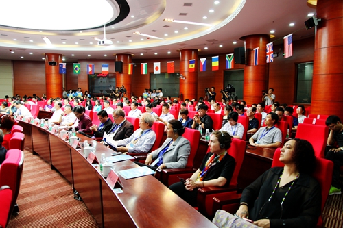 第二届世界名山学术研讨会暨高校公共外交论坛由九江学院、泰山学院、黄山学院、乐山师范学院主办,九江学院承办,中国全球传播与公共外交研究专业委员会协办。本届大会将围绕“经济全球化下的世界名山旅游发展和“一带一路”背景下的高校公共外交研究”这一主题开展广泛、深入的交流与合作。应邀出席本届大会的代表有:黄山学院党委书记汪枫,江西省人大环境与资源保护委员会副主任委员甘筱青,泰山学院副校长殷敏,黄山学院副校长胡善风,乐山师范学院校长代表杨悦,菲律宾圣名大学副校长那罗,菲律宾圣名大学副校长文森特,摩尔多瓦自由国际大学副校长克里斯蒂娜,以及来自澳大利亚、美国、巴西、伊朗、南非、德国、菲律宾、柬埔寨、日本、泰国、法国、罗马尼亚、摩尔多瓦等五大洲15个国家和地区世界名山所在地高校的专家学者,国内公共外交界的领导和学者。中国上海、浙江、广东、北京、湖北部分高校及相关科研机构专家、学者60余人也应邀参加大会。开幕式由九江学院党委书记郑翔主持。
