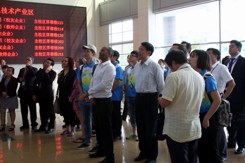 9月19日中午,与会的中外专家学者在九江学院党委书记郑翔的陪同下,参观了九江学院大学科技园。