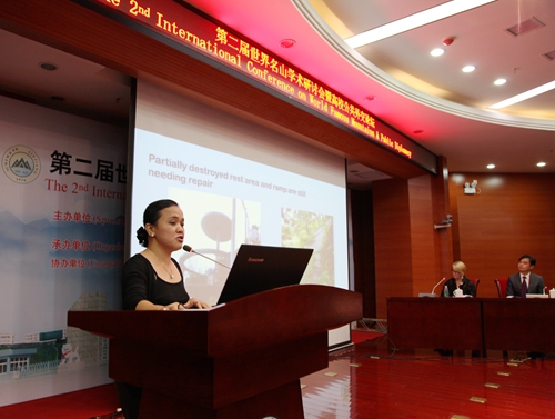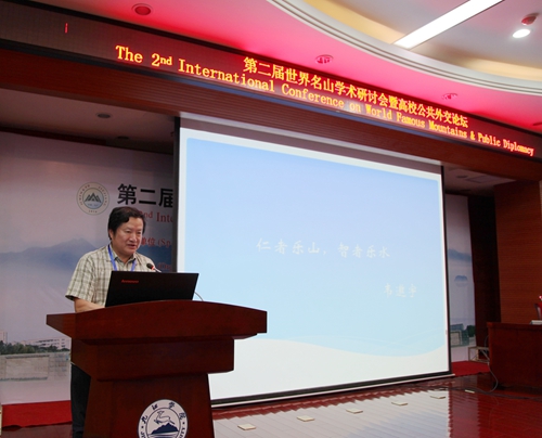研讨会上,德国欧洲森林艺术协会组织者和发起者乌特女士、法国巴黎第三大学韦遨宇教授、菲律宾圣名大学副校长那罗教授、南非西开普敦大学迈克尔教授、中国江西师范大学地理与环境学院副院长钟业喜教授、中国乐山师范学院四川旅游发展研究中心干鸣丰研究员,世界名山协会非洲副秘书长、南非国家公园负责人盖瑞先生,世界名山协会南美洲副秘书长、塞阿拉州联邦大学教授莫妮卡女士,中国台湾静宜大学王友民教授,中国江西南昌大学经济管理学院龚志强教授,中国九江学院药学与生命科学学院副院长鲍海鸥,日本山梨学院大学熊达云教授,世界名山协会大洋洲副秘书长杨娜女士,罗马尼亚欧洲山脉协会会长米哈尔.安德烈先生,摩尔多瓦自由国际大学国际处副处长拉杜先生,中国黄山学院旅游学院 朱国兴院长,中国九江学院旅游学院院长李松志教授,美国阿姆斯特朗大西洋州立大学地质旅游系助理教授艾米,波特,日本大和高田友好协会秘书长小和田,泰国清迈大学语言学院马如宝教授,中国江西财经大学江西旅游发展研究中心副主任曹国新教授,中国九江学院旅游学院副院长孙冬英教授等23位中外专家学者围绕“世界名山研究”主题作了精彩的报告。他们在报告中提出了一些新概念、新观点、新看法,富有新意、启人深思。