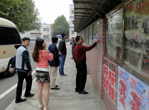 杨副校长一行首先来到主三食堂门前广场检查,察看了三食堂周边环境,发现三食堂墙上贴有许多“牛皮癣”,影响了学校形象,三食堂广场前面的宣传橱窗里面的报纸也很陈旧,杨副校长要求宣传部加强检查和督促,要求后勤管理处及时组织人力清除墙上的“牛皮癣”,保持校园环境的整洁;要求学生处、团委定期更换宣传橱窗里的报纸,充分发挥宣传橱窗的作用。