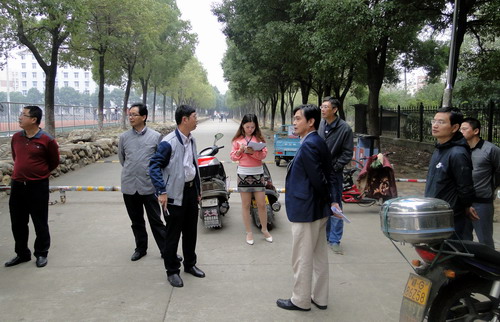 杨副校长一行又沿着散原路检查。发现路两边一些横幅没有清理干净,一些路段的下水道有堵塞现象,部分明渠和暗渠里面堆有垃圾,路边人行道上还有一些枯树枝堆放着。杨副校长要求宣传部、保卫处及时组织人力及时将横幅清除干净。要求国资处和国际交流学院组织人力疏通下水道,清除明渠暗渠里的垃圾。要求基建处及时将人行道上的枯树枝清理干净。