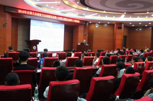 10月16日上午,由江西省科协主办,九江学院、江西省科协“清洁能源”学会联合体、中国石化九江分公司承办的2016年全国大众创业万众创新活动周九江站活动在我校举行,中国工程院院士、清华大学金涌教授在逸夫图书馆报告厅为化环学院师生做了一堂题为“美丽化工——创新驱动的化学工程科学与技术”的专题讲座。副校长陶春元与师生们一起聆听了讲座,中国化工学会副秘书长崔胜利、省科协学会部部长万程东、主任科员王涵、省化学化工学会副理事长徐刚、省石油学会副秘书长袁健、九江市科协副主席黄建华及化环学院党政领导出席讲座,中国化工报等媒体全程进行报道,讲座由化环学院院长严平主持。