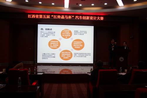 江西省工信委装备陈军处长给与会人员详细介绍了江西省汽车产业发展的状况。江西江铃晶马汽车有限公司刘正伟主任介绍了江铃晶马汽车有限公司的基本情况进行了简介,大赛裁判长熊翔辉教授宣布参赛规则及要求。