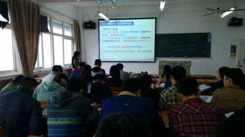 听课结束后,纪副校长和谢老师进行了交流,他指出:谢老师课的讲得非常好,复杂的公式推导分析得非常清楚,让学生弄清了其来龙去脉,领悟了其中蕴藏的数学方法及物理含义,教学效果好。