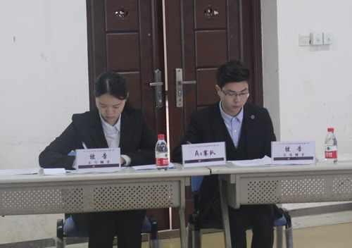 在言辞辩论比赛小组赛阶段,十八只参赛队分为ABCD四个小组,小组内实行单循环比赛,每个小组第一名获得进入复赛(半决赛)的资格。经过抽签,我校代表队被分入A组,所持签号为A4,对阵形式为:以原告方为持方对阵A3代表队,以被告方为持方对阵A5代表队。在我校代表队参加的两场小组比赛中,出赛队员按照赛前准备,立论有条不紊、辨析有法有据,沉着应对、稳定发挥,最终以较大优势战胜对手;小组赛两场全胜获小组第一名,率先进入半决赛