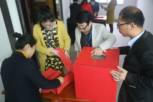 11月19日下午,党代会举行全体会议,经过充分酝酿,按照无记名投票差额选举办法,与会代表郑重地填写了选票,经过计票人、监票人认真统计,选举产生了中共九江学院附属医院新一届党委委员:张南华、张志平、李春平、谷翔、贾宗林、刘英明、胡志坚;中共九江学院附属医院新一届纪委委员:刘英明、宛赤军、夏莉娜、但传军、罗丹、盛传玲、欧阳卫泽。