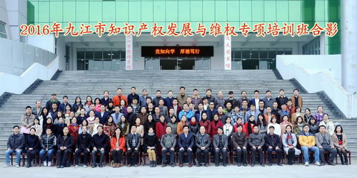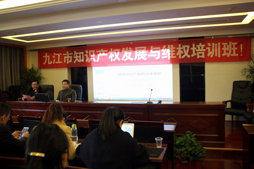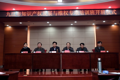 为推动实施人才强国战略,加强知识产权法律维权意识,由江西省知识产权局主办、江西省知识产权培训(九江)基地与九江市知识产权局共同承办的九江市知识产权发展与维权培训班于12月10日上午在我校逸夫图书馆学术报告厅隆重开班。江西省知识产权局局长熊绍员、副局长徐彬,九江学院副校长纪岗昌,九江市知识产权局副局长黄腊梅,政法学院院长詹建志、科研处副处长宋士华等出席了此次开班仪式。仪式由政法学院院长詹建志主持。