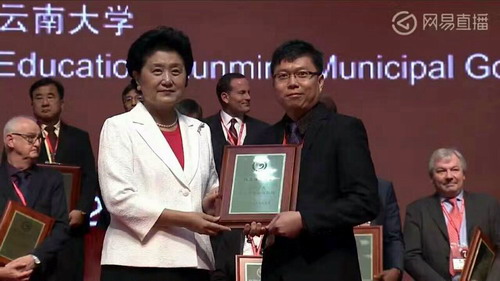 国务院副总理刘延东为柬埔寨王家研究院孔子学院柬方院长CHEA MUNYRITH颁发“2016年孔子学院先进个人”奖励