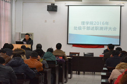 根据学校统一部署,12月27日下午,理学院处级干部述职测评大会,夏启国副校长在组织人事部副部长金葆金、组织人事部师资科科长周玉俊陪同下参加了会议。理学院院领导班子和全体教职工参加了会议,会议由副部长金葆金主持。