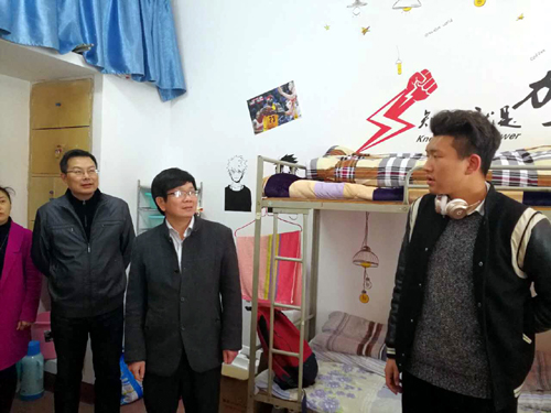 检查过程中,王万山副校长详细查看了宿舍楼整体卫生情况和各处卫生死角。对环境整洁的宿舍提出了表扬,对发现的问题及时指出,并要求有关学院立即整改。在检查的同时,王副校长与同学们亲切交谈,勉励他们养成及时清扫,保持宿舍整洁的好习惯。