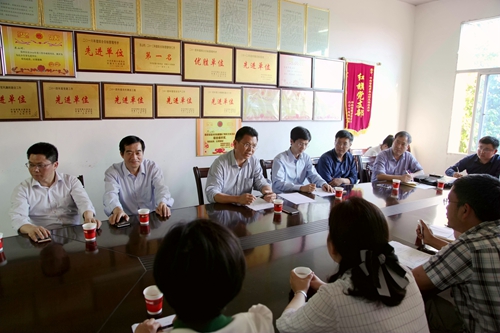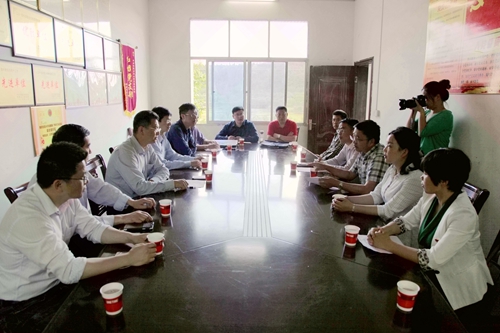 在村委会会议室,刘晓东与武宁县委常委、宣传部长卢洪温,官莲乡乡长邓卢武、东山村支部书记陈希才等进行了座谈,分别听取了他们对脱贫攻坚的总体要求和目标任务,以及东山村今年建设四个示范组、主干道绿化亮化、文化中心扩建项目和土地流转发展特色种植养殖业等情况介绍。同时他还听取了我校旅游与国土资源学院院长李松志就该院帮助东山村做乡村旅游规划、驻村第一书记谭翊泉就我校2015年来在东山村开展精准扶贫工作的情况汇报。
