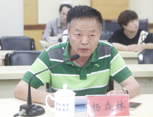 杨焱林副校长在汇报会上致欢迎词,他代表学校对专家组一行莅临指导工作表示欢迎,恳请专家组多提宝贵意见,提高我校的专业建设水平和学位管理水平。