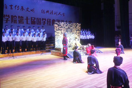 经典人人吟唱,国学代代相传。5月25日晚,九江学院第七届国学经典诵读大赛决赛在大礼堂举行。刘晓东、魏立平、陈春生、夏启国、查振华等校领导与千余名师生代表共同欣赏了精彩的国学演出,领略了国学经典的魅力。