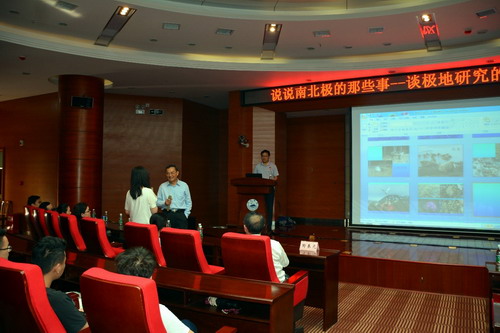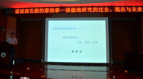 康教授结合自身研究和工作实际,围绕南北极地理地貌、气候变化、生态环境、考察探险等方面,深入浅出、图文并茂、数据详实、表述生动,为我校师生展示了当今国际国内极地研究的热点问题和进展。康建成教授先后在美国新罕布什尔州立大学地球海洋空间研究所、法国原子能委员会“气候与环境科学实验室(LSCE)”、法国国家科学研究中心“冰川•地球物理•环境实验室(LGGE)”、美国阿拉斯加州立大学国际北极研究中心从事研究,两次参加澳大利亚国家南极考察队,多次参加中国国家南北极考察队。