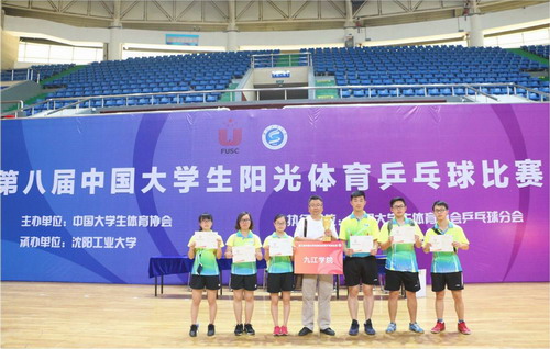 我校乒乓球队是首次参加全国大学生乒乓球比赛,在教练韩开焱老师的带领下,队员们在比赛中充分发扬顽强拼搏、敢打敢拼、永不言弃的精神。经过激烈的角逐,在最后的比赛中以1: 3不敌上海复旦大学,最终获得全国混合团体赛二等奖的好成绩。乒乓球队在组队训练到参加比赛短短两个月的时间内,能取得这些成绩离不开学校以及学院党政领导的重视与支持,更离不开全体教练员得甘于奉献和运动员的顽强拼搏。九江学院乒乓球队将继续刻苦训练,积极备战,随时准备迎接新的挑战,为九江学院争光添彩。