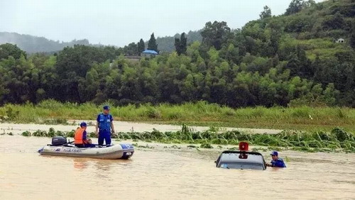 匡美建乘坐的汽车被洪水淹没 落水后不忘做手势引导他人逃生