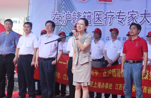 “心连心·故乡情”,7月1日,纪念建党96周年在沪赣籍医疗专家回乡义诊大型公益活动,在临床医学院/附属医院隆重举行。九江市副市长李军、九江学院副校长杨耀防、专家代表李锋、九江驻沪办主任程厚红、临床医学院/附属医院院长张志平等出席了启动仪式,仪式由卫计委副主任陈玲珠主持。