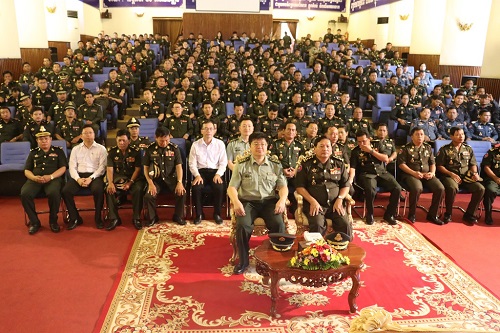 柬埔寨国防部军队民事事务局局长桑萨仁将军(SAO Saroeun)感谢柬埔寨孔子学院在国防部建立汉语中心,希望孔子学院给予汉语中心更多的帮助。柬埔寨孔子学院谢莫尼勒院长(HE CHEA Munyrith)介绍了孔子学院的教学和文化交流情况,感谢柬埔寨国防部对汉语中心的支持。