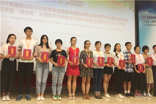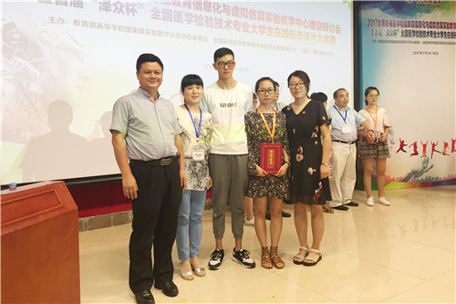7月14-16日,首届全国医学检验教育信息化与虚拟仿真实验教学中心建设研讨会暨首届全国医学检验技术专业大学生“在线形态读片大奖赛”在广州南方医科大学举行,我校临床医学院/附属医院胡志坚副院长、技能中心韩峰主任、检验科欧阳良良老师代表我校带队参加,临床医学院/附属医院14级医学检验技术专业本科班学生夏婷、母会铃参加比赛,分别获得二等奖、优胜奖的优异成绩。