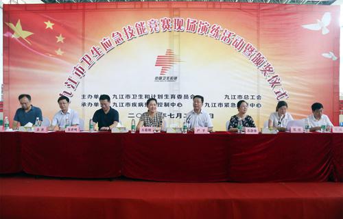为积极响应国家卫计委和省卫计委提出的卫生应急竞赛活动要求,提升广大卫生应急工作人员的业务能力和专业水平,7月28日,由市卫计委组织的九江市卫生应急技能竞赛表演及颁奖活动,在九江职大新校区体育馆举行。省卫计委副主任万筱明、九江市政协副主席严平及市总工会、市卫计委、市疾控中心、市急救中心等领导出席了活动。临床医学院/附属医院纪委刘英明书记、急诊科但传军主任带队参加,参赛队喜获团体一等奖佳绩。