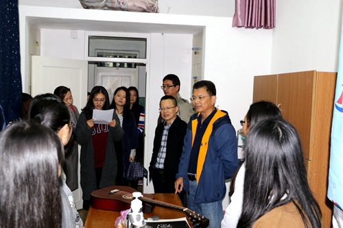 当晚,刘晓东校长参观了设在学生宿舍18栋一楼的旅游学院学生工作区,走进学生宿舍与同学们深入交流,并在35栋学生宿舍入住。