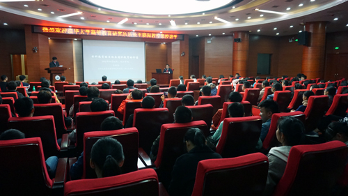 王万山副校长在主持讲座时,希望同学们在大学的时光里,一是不要盲目追从,要确定的目标,二是要延伸自己的兴趣与爱好,三是要学会判断,主动思考。