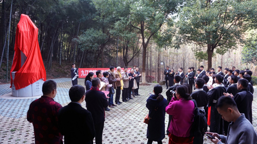 在热烈地掌声中,甘筱青、皇甫金石、刘晓东等领导和嘉宾一同为王阳明雕像揭幕。