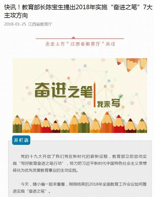 快讯!教育部长陈宝生提出2018年实施“奋进之笔”7大主攻方向