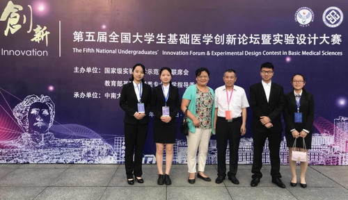 “全国大学生基础医学创新论坛暨实验设计大赛”是全国基础医学教育领域影响力最大的大学生竞赛活动,每两年举办一次,由国家级实验教学示范中心联席会、教育部基础医学类专业教学指导委员会联合主办。国家级实验教学示范中心建设院校参赛项目限额为六个,其他普通院校为四个。此届大赛由中南大学承办,有北京大学、复旦大学、浙江大学、中山大学、中南大学、上海交通大学等113所国内外高校的475个项目团队参赛,比赛按照参赛项目的10%、15%、20%分别设置一等奖、二等奖、三等奖。大赛规格高、参赛选手强、竞争异常激烈。