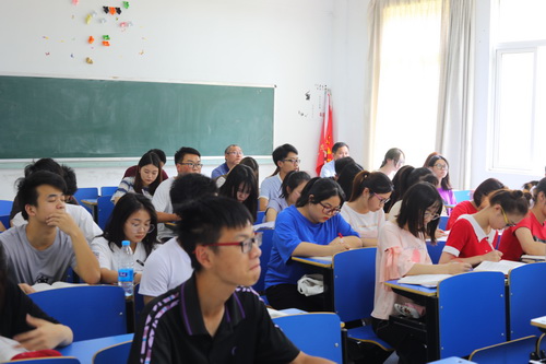 6月6日下午,校党委书记赵伟在教务处负责人的陪同下在竞秀楼随堂听课。