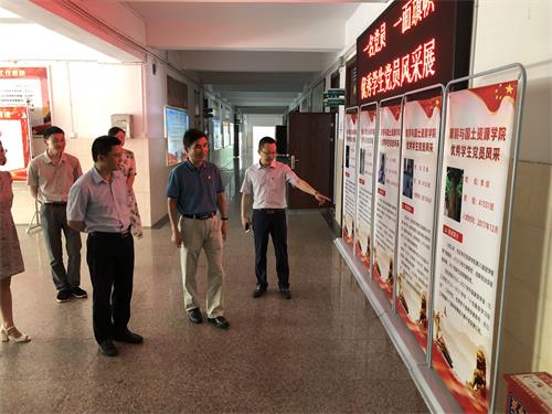 会前,魏立平副书记在旅游与国土资源学院党委班子成员的陪同下参观了优秀学生党员风采展。