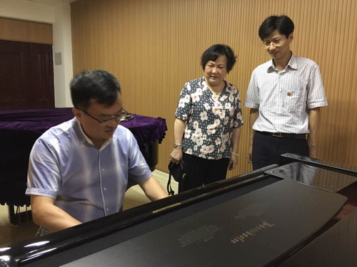 7月1日下午,省教育厅副巡视员张爱萍在副校长查振华陪同下,到艺术学院考察指导工作。艺术学院副院长欧阳时来向张爱萍副巡视员介绍了艺术学院的教学设施、师资生源等总体情况,并陪同她考察了舞蹈排练厅、琴房、服装实验室、三维打印实验室以及正在装饰安装的音乐厅等特色教学实践场馆,重点介绍了上述实验室的建设特色、在全省乃至全国综合性高校所处的水平。
