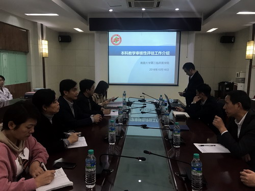 10月16日上午,副校长杨耀防率医学部许礼生主任、向维聂副主任,临床医学院胡志坚副院长,教务科洪永春副科长,九江市第一人民医院医务处胡星兰处长,九江学院附属171医院教学办孙红梅主任等人员赴南昌大学医学部学习考察“本科教学审核评估”工作。