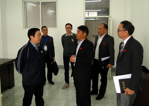 专家组组长朱林生教授走访政法学院并参观该院实验室。