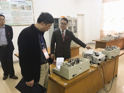 评估专家梅锦春教授实地查看电子工程学院实验实训基地设施、查阅实验登记录。